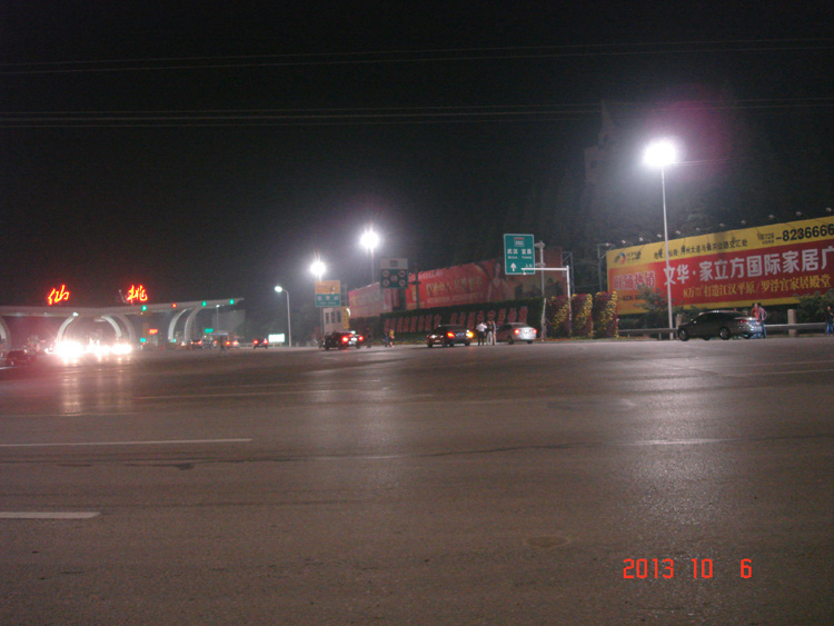 湖北仙桃高速出口250W投光燈,經電量節能實測,每年每盞氙燈即可節電1000多元。并且氙燈光衰小、壽命長,省下更多燈泡更換費用。